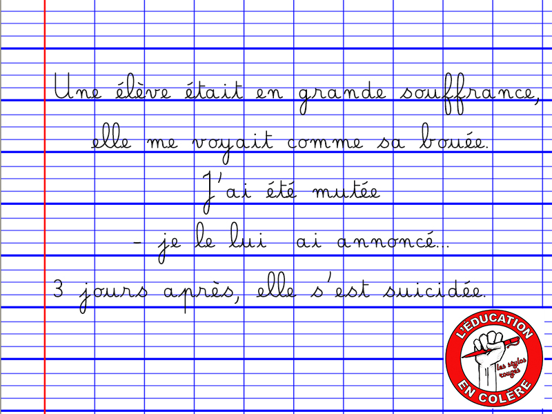 - Quel poste occupez-vous ? Professeure de lettres - Depuis combien de temps enseignez-vous ? 22 ans - Pour quel salaire ? 2740 euros nets - Pourquoi avoir choisi l'enseignement ? Par choix. - Pourquoi êtes-vous fier d'être enseignant ? Parce qu'outre la littérature, j'essaie d'inculquer aux élèves la libre pensée, leur apprendre à dire … Lire la suite 140. Ils nous méprisent au plus haut point.